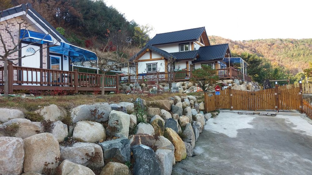 그동안 산을 뒤로하고 앉은 경사지 위에