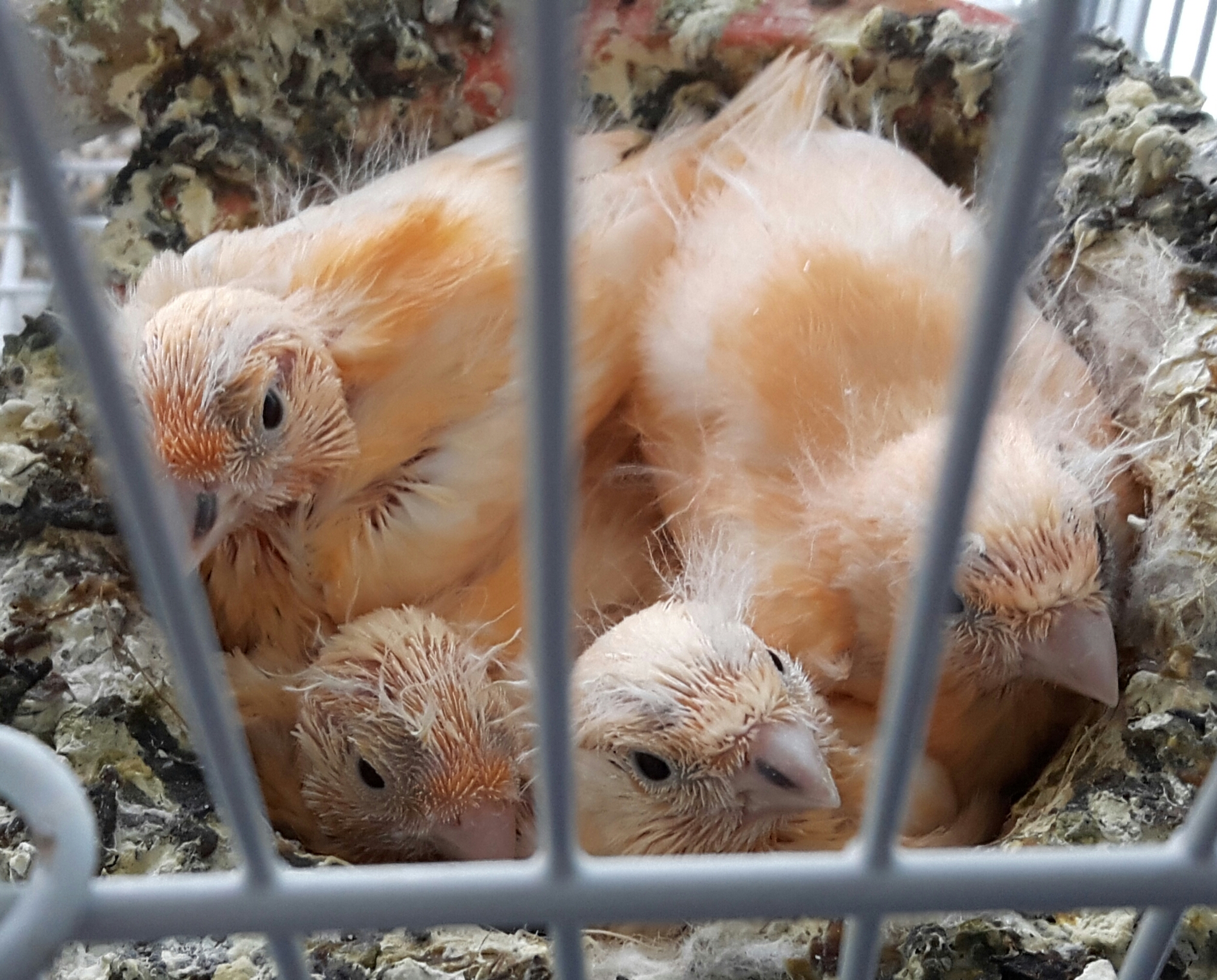 잠시 날림장을 준비하는 사이에 좁은 새장에서 일렬로 대기하는 녀석들입니다.