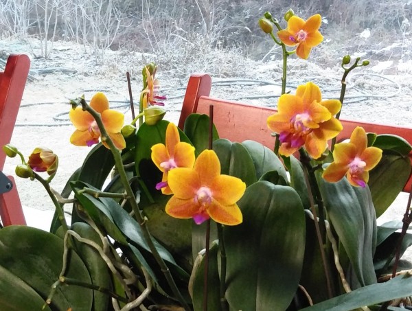 야외의 설경과 실내의 난꽃이 묘한 조화를 이룹니다.