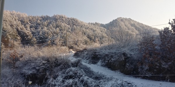 꽁꽁 얼어붙은 봉화의 산자락이 시원하게 보이네요. 활짝 핀 꽃들이 인정스레 보입니다..