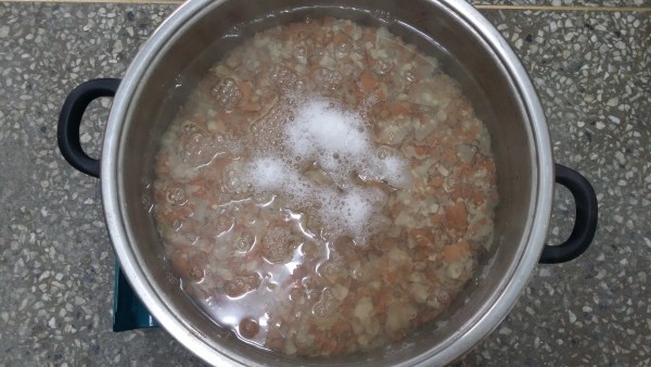 양이 너무 많아서 1차. 2차. 3차로 나눠서 계란껍질을 삶고 있는데.....