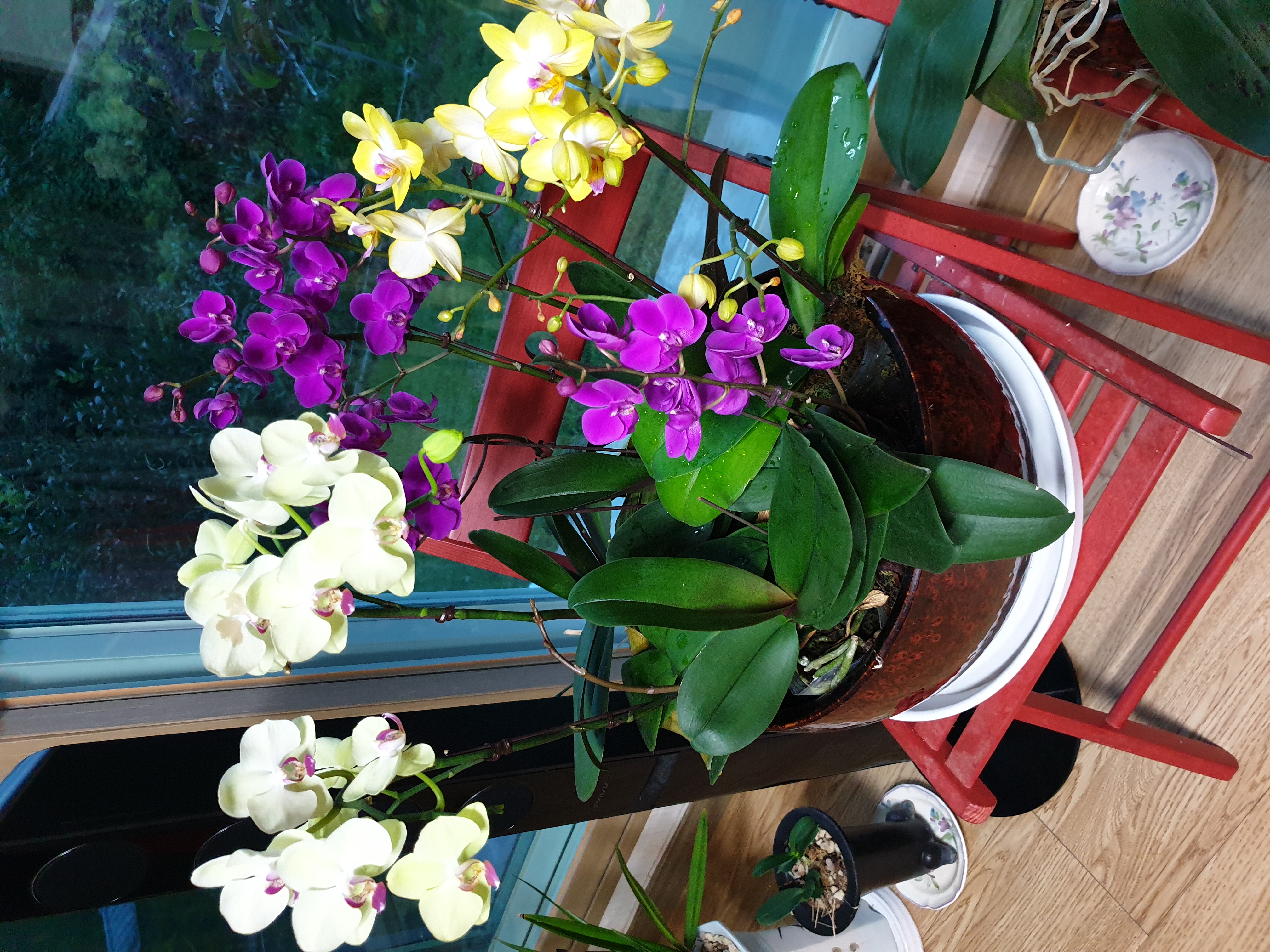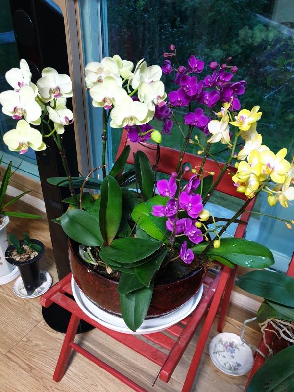호접란 코스모스 붉은고추 카나리아 멋진 조화를 이루어 멋있습니다.^^.