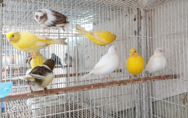 카나리아 새방 햇새들 특히  수컷의 노래소리가