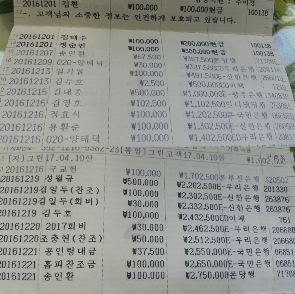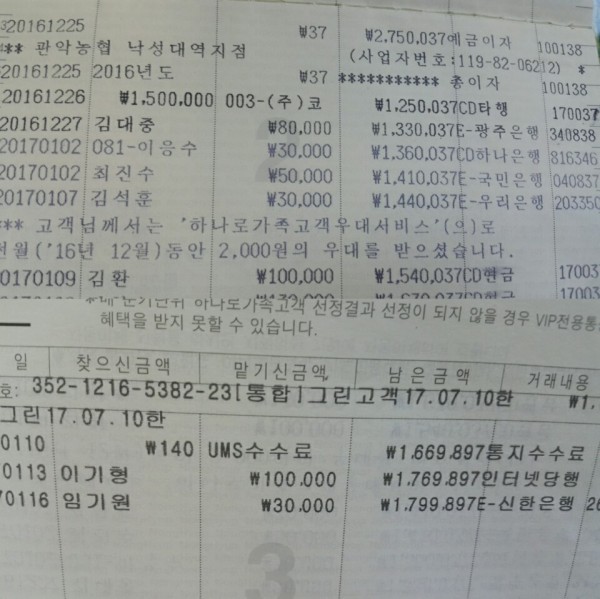 김환 10만원  ..   김태수 10만원 .. 정순진 10만원 ..  임기원 10만원 .. 김대중 50만원  .. 김영호 10만원 ..정효식 10만원  용환준 10만원 .. 양태덕 10만원  ..